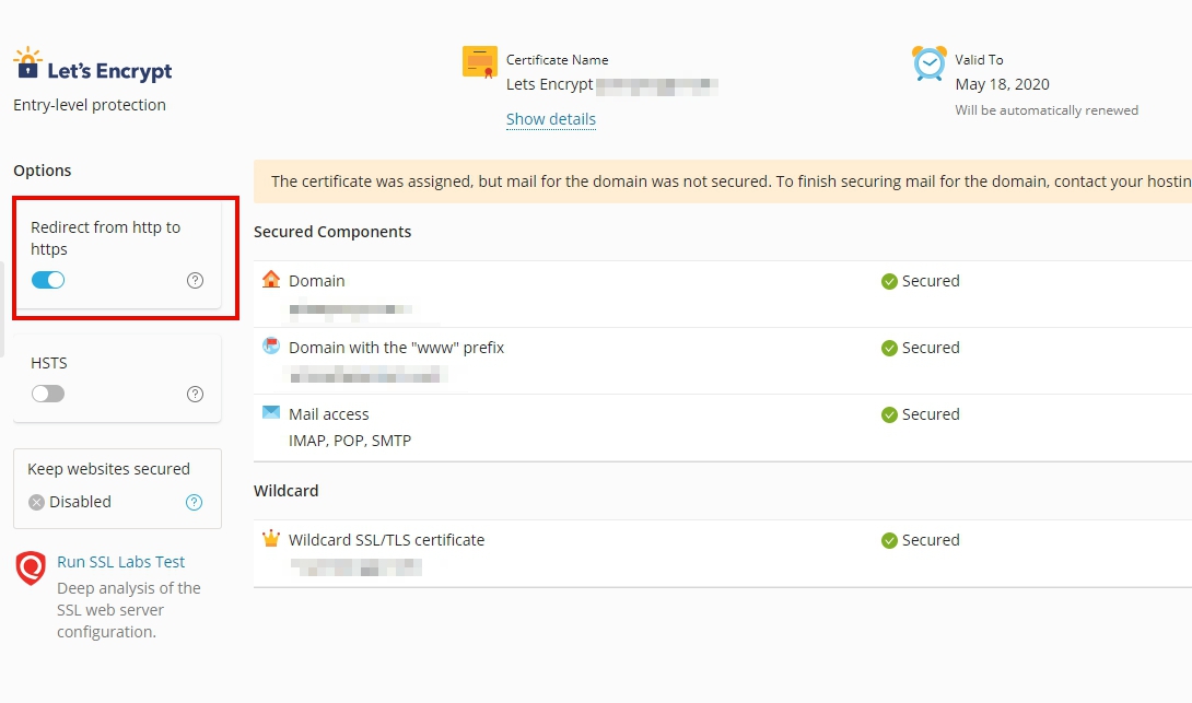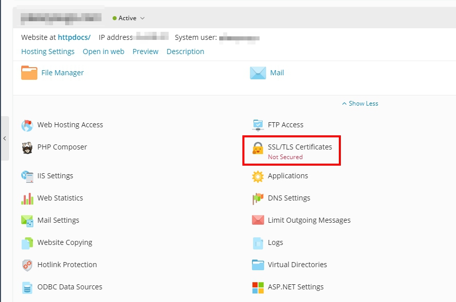 3. Scroll down to the bottom and click on Install a free basic certificate provided by Let's Encrypt.